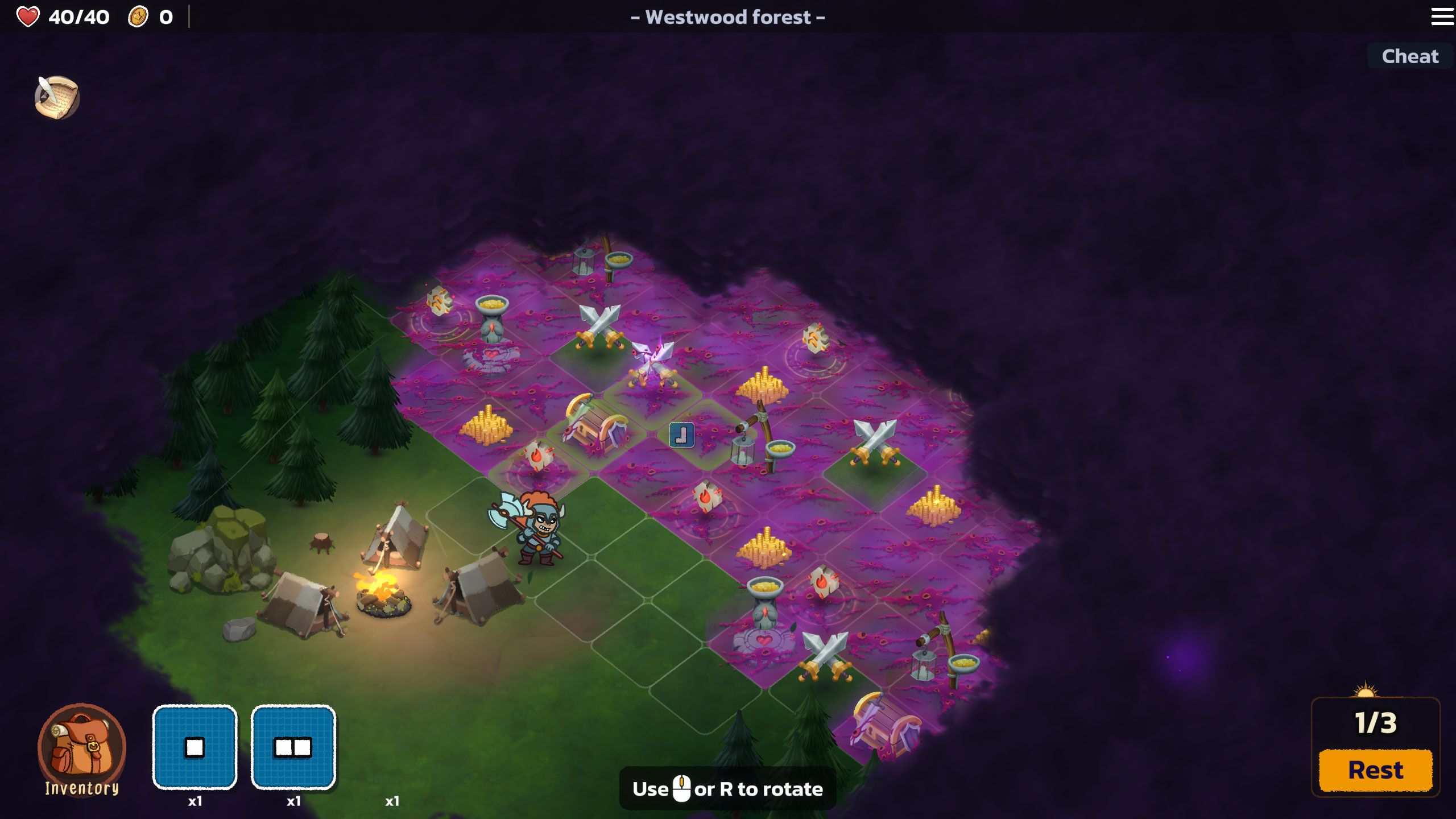 Chart a strategic path through corruption. Place tiles, cleanse routes, and order encounters to maximize your build. Be quick: when the day ends, corruption begins to weaken you.